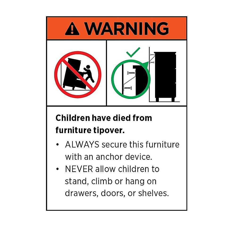 - NEVER allow children to stand, climb, or hang on drawers, doors, or shelves. _x000D_