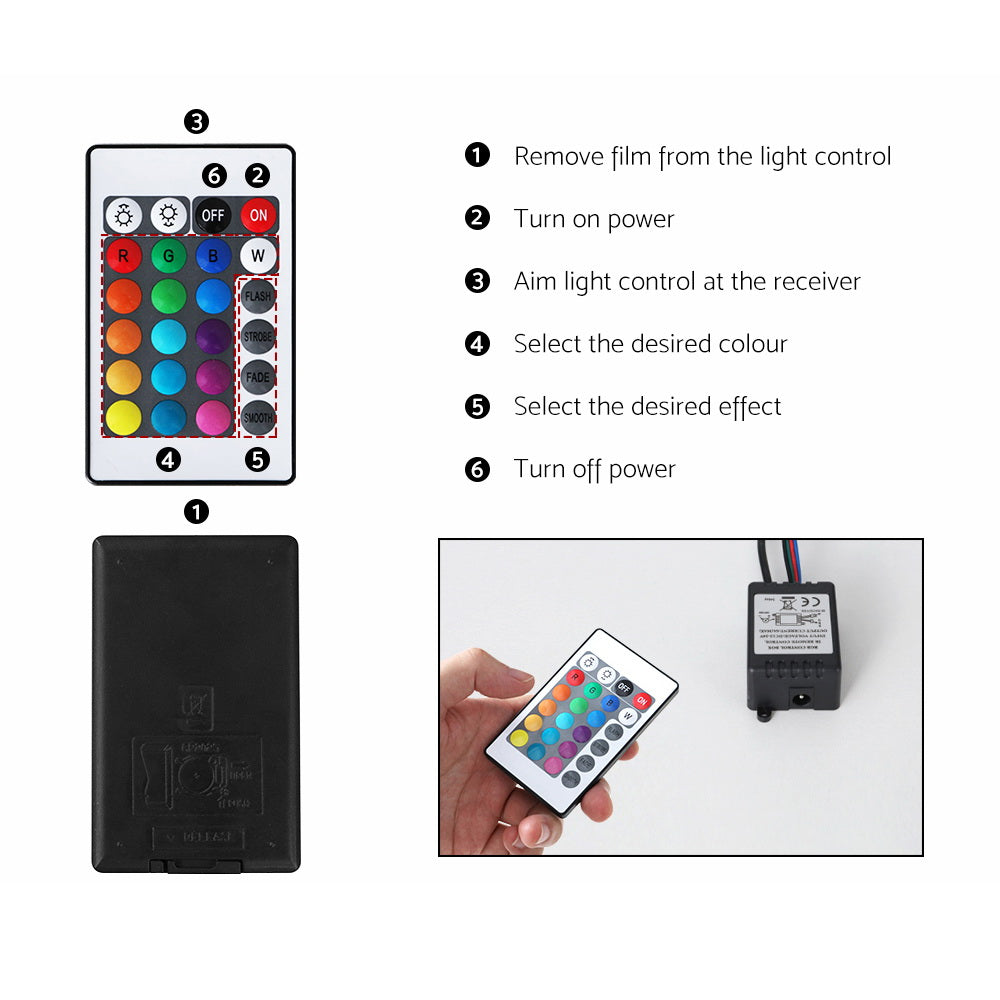Please point the remote control towards receiver to customise LED lights.
