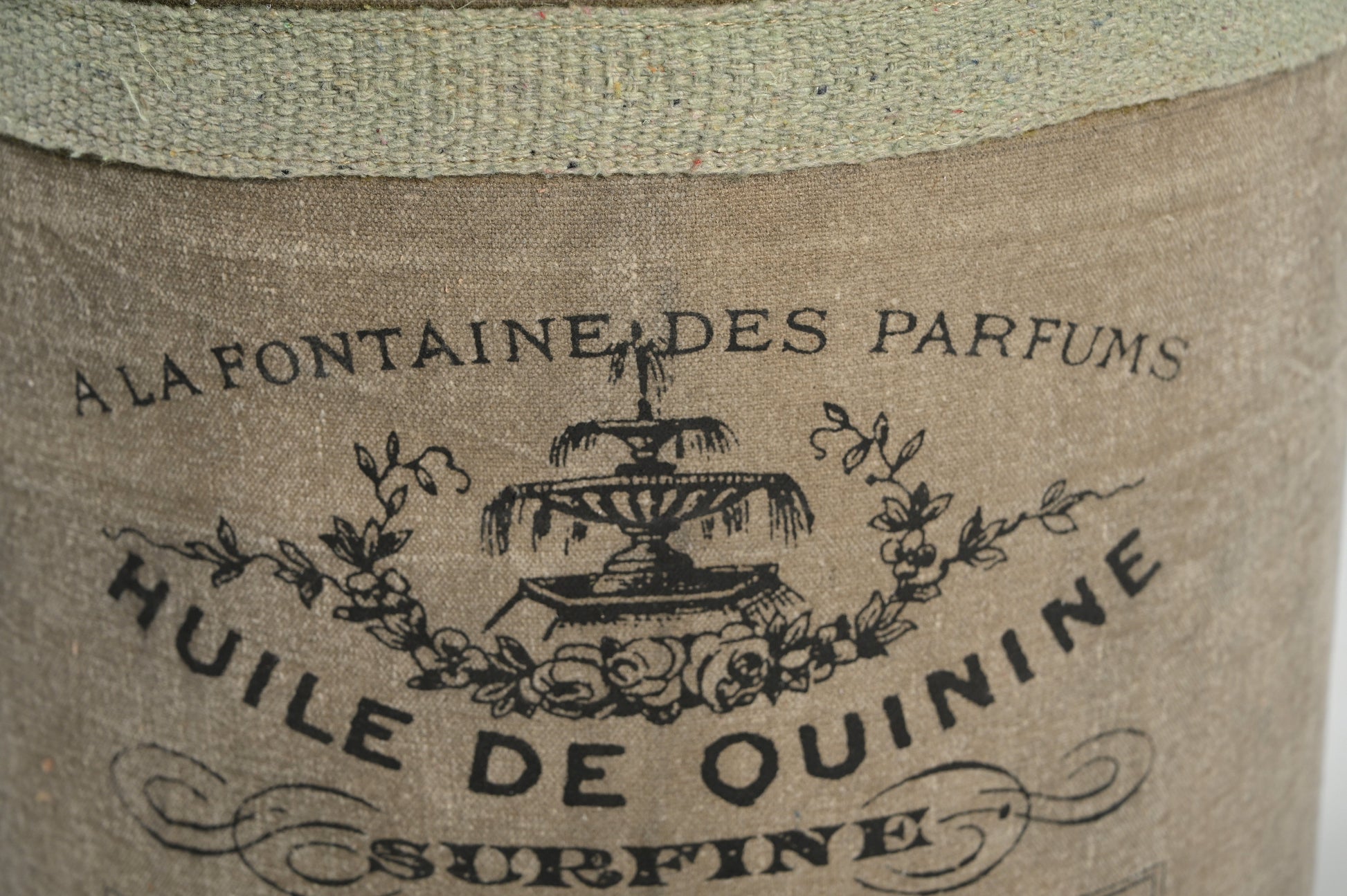 Canvas and leather are an inspired combination in our French Canvas Leather Perfume Ottoman. The cylindrical shaped ottoman features an exquisite leather mushroom style seat top with exposed stitching, and a canvas base that includes a vintage French perfume house motif. This is another perfect addition to your French vintage inspired space.