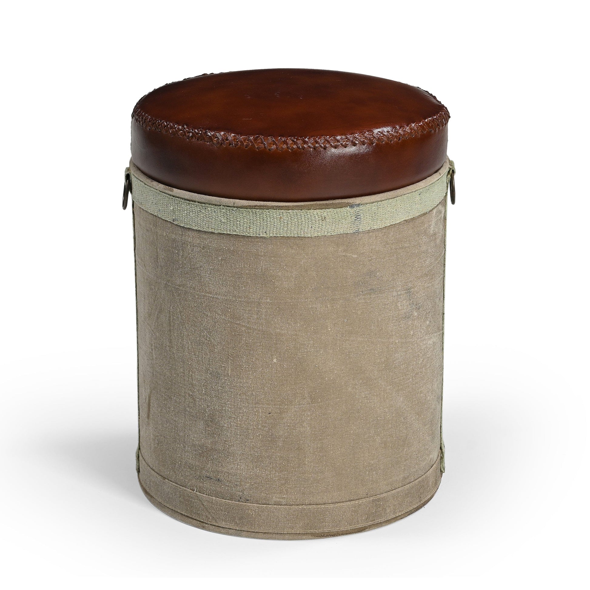 FRENCH CANVAS LEATHER PERFUME OTTOMAN