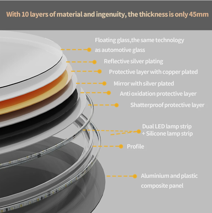 Material: Aluminum Alloy frame + HD Glass mirror