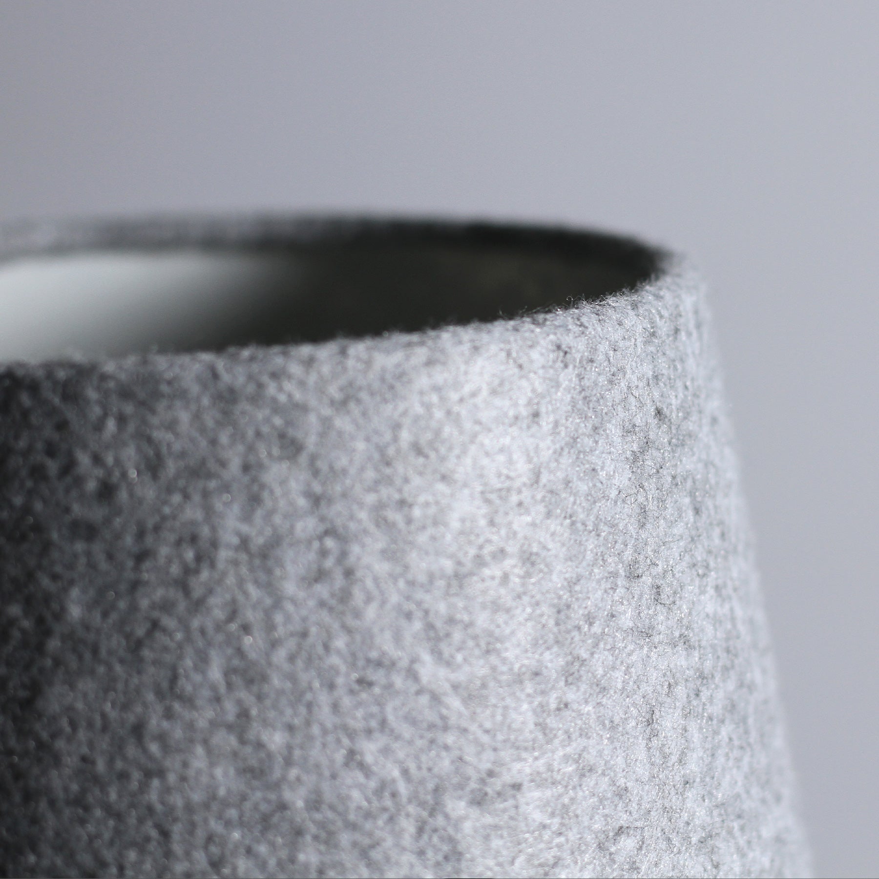 The grey cone-shaped felt lampshade corresponds to the concrete lamp base smoothly, and the matte black lamp pole perfectly separates the grey, suiting the overall organic appearance. The Jerome Table Floor Lamp would work ideally with earthy home decors that use timber, stone and concrete throughout the house.