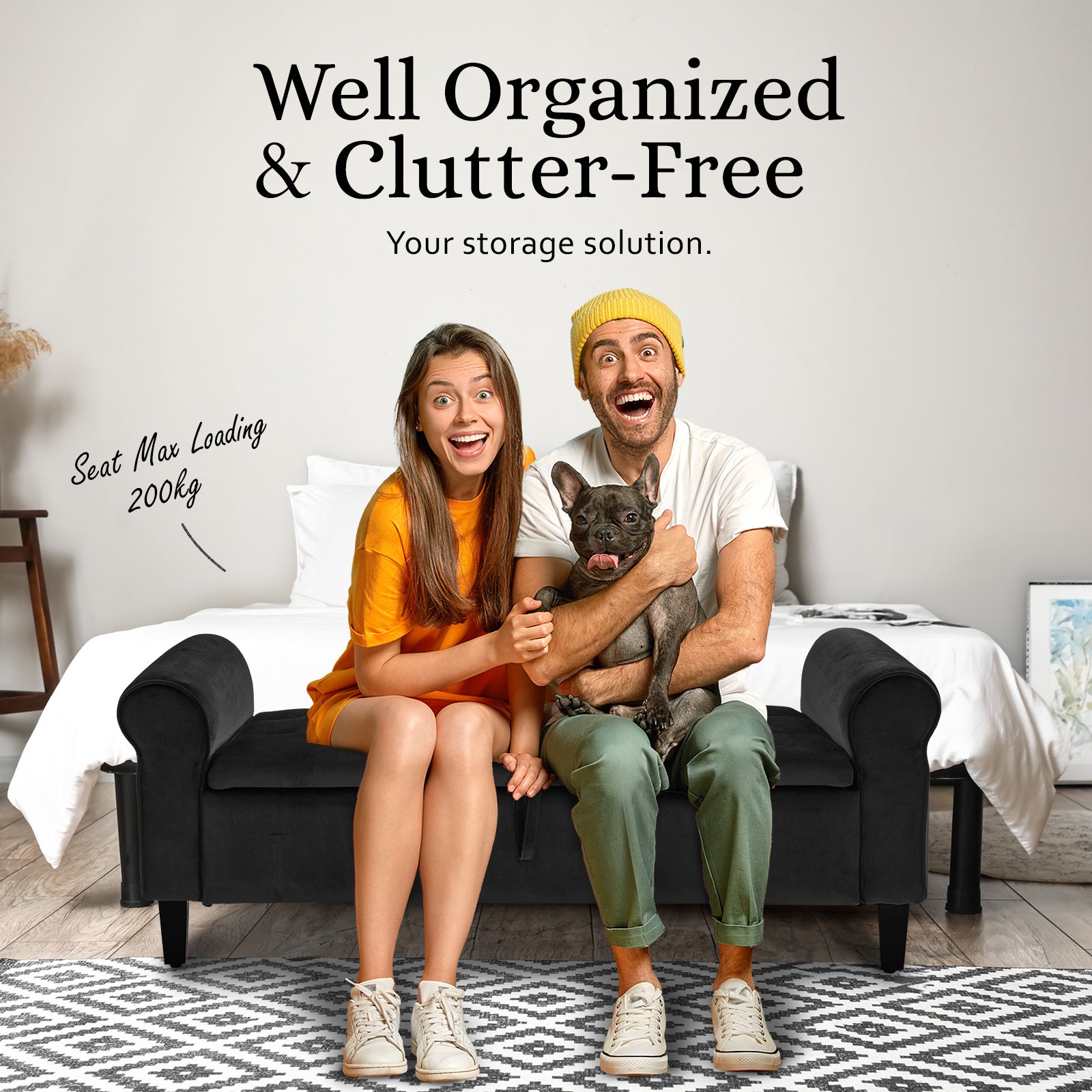 _x000D__x000D_ _x000D__x000D_Lift the lid, and voila! You've got a roomy storage space inside - great for keeping blankets and pillows neat and tidy. Putting it together is a breeze, and the wooden legs bring a touch of warmth to the design.