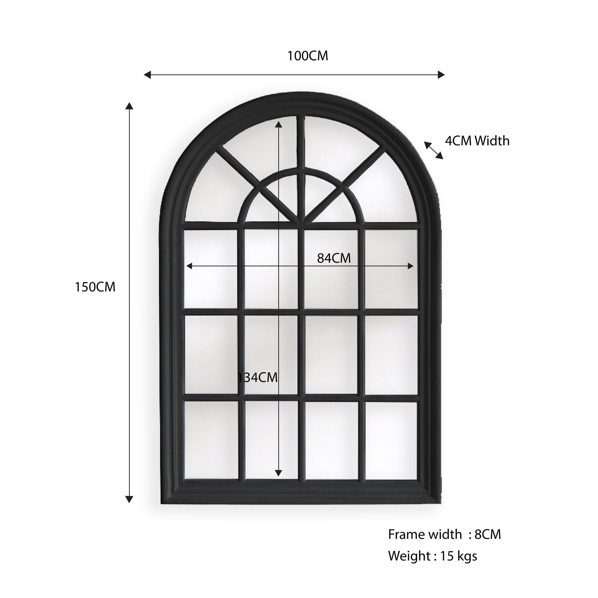 Window Style Mirror - Black Arch 100 CM x 150 CM